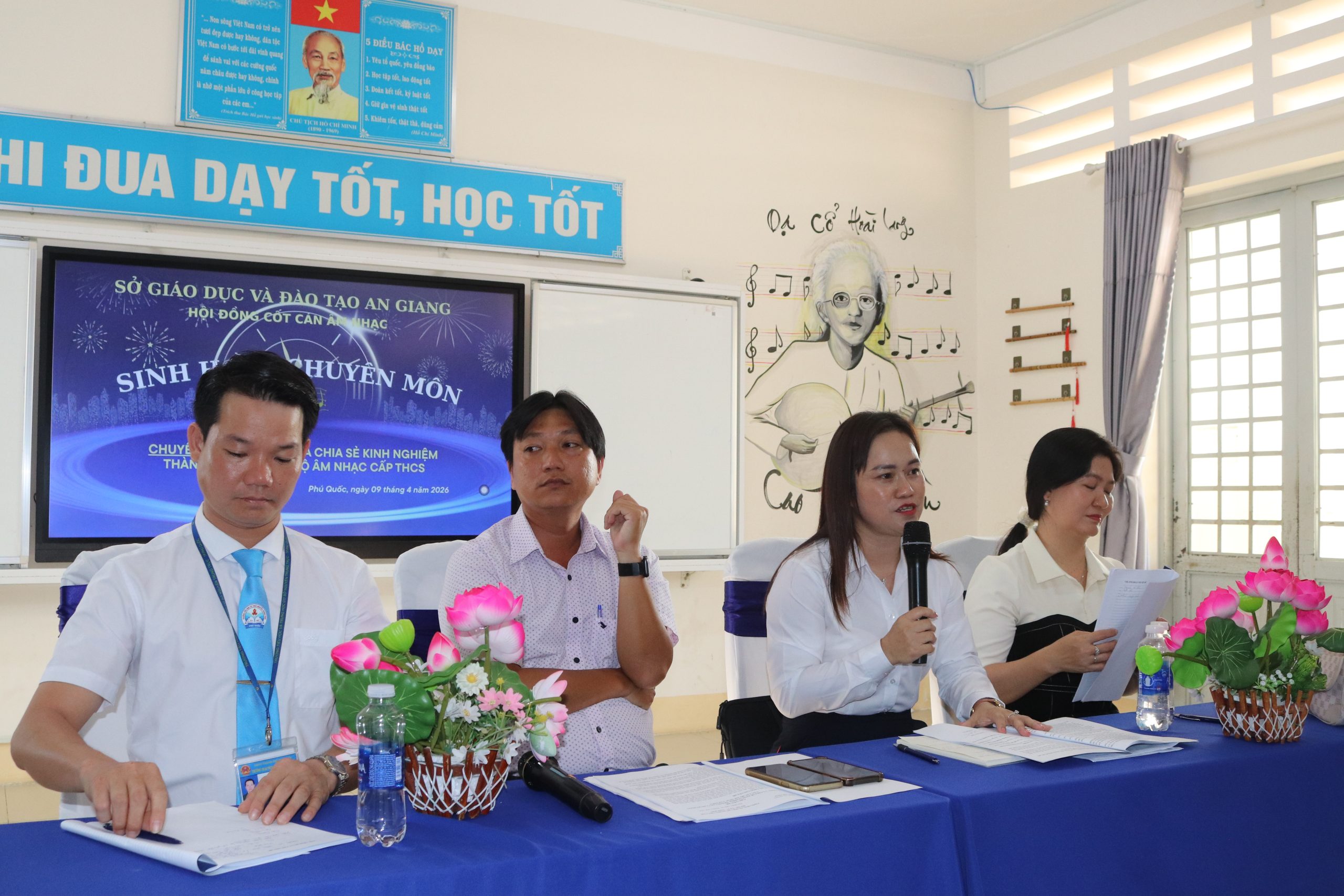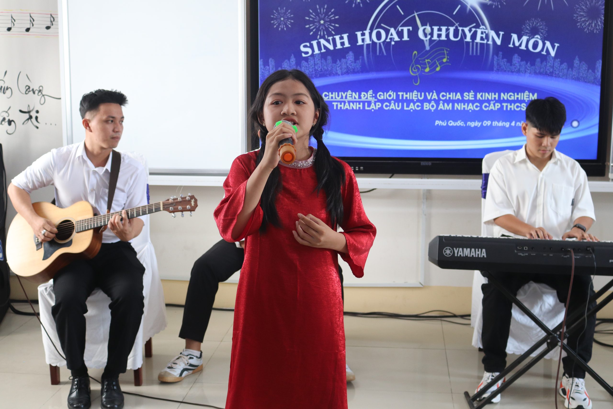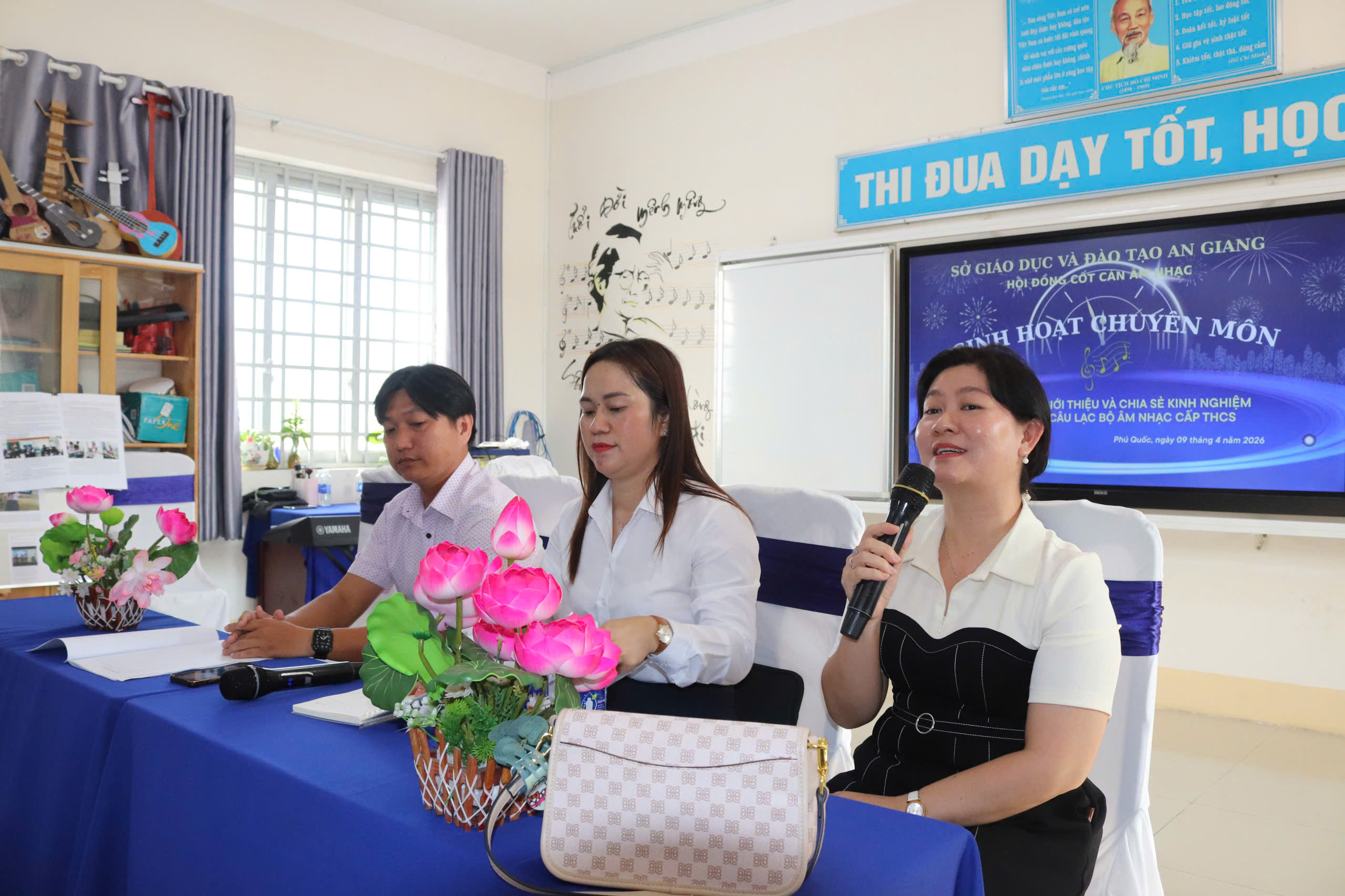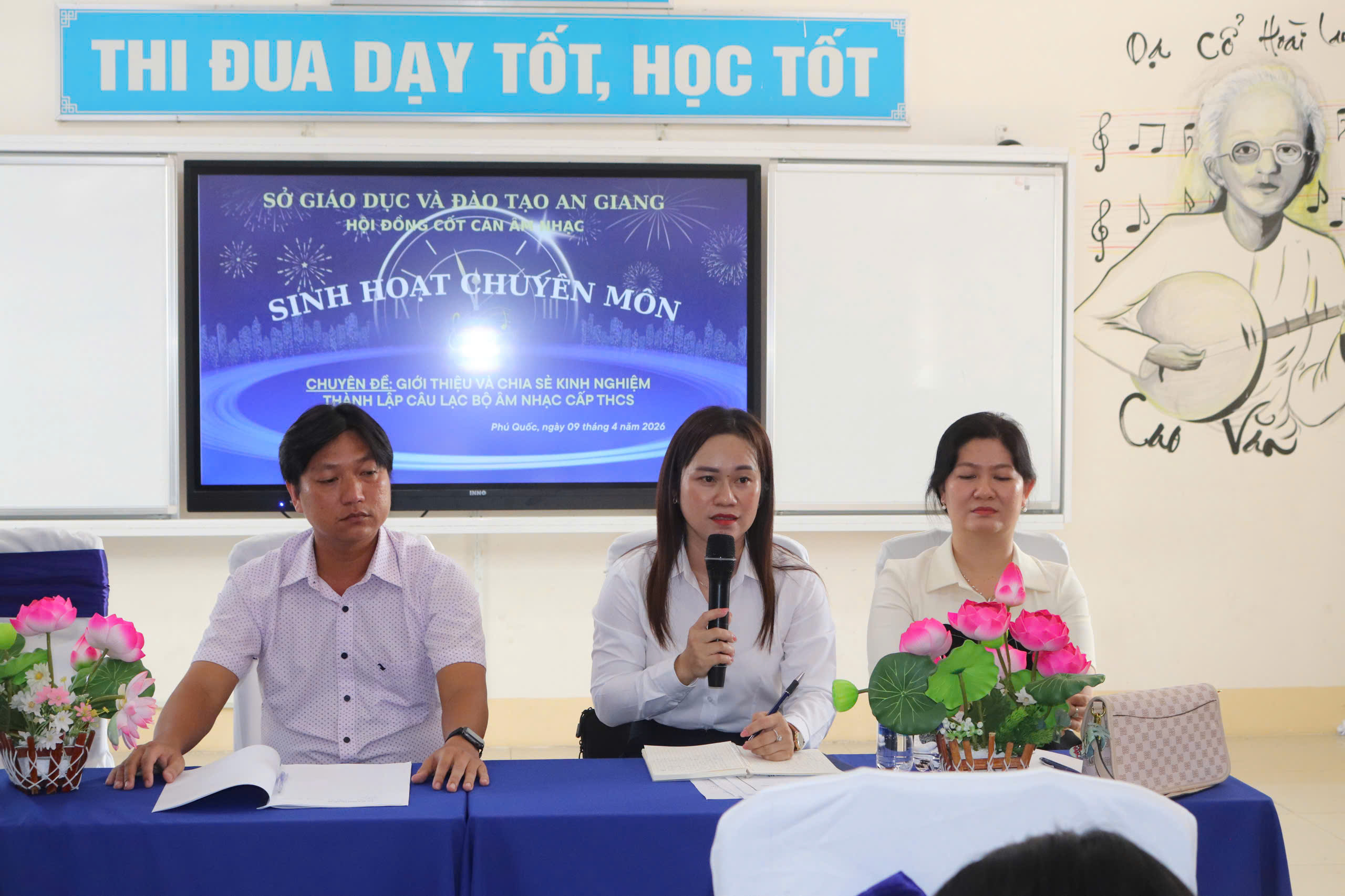 Trong không khí trang trọng và ấm áp, buổi sinh hoạt chuyên môn với chủ đề “Chia sẻ kinh nghiệm tổ chức và hoạt động Câu lạc bộ (CLB) Nghệ thuật cấp THCS” đã diễn ra thành công rực rỡ. Đây không chỉ là buổi giao lưu nghề nghiệp mà còn là dịp để CLB Nghệ thuật nhà trường báo cáo thành quả, lan tỏa những giá trị tích cực đến Hội đồng cốt cán tỉnh An Giang cùng đội ngũ giáo viên âm nhạc tại Đặc khu Phú Quốc.
