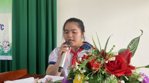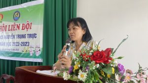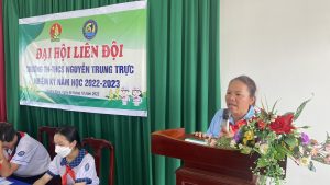 Phát biểu tại Đại hội, Cô Trần Thị Mỹ Hường, Phó Bí thư Chi bộ – Phó Hiệu trưởng nhà trường đã có lời chúc mừng đến các em đã tổ chức đại hội lần đầu tiên rất bài bản và chất lượng. Cô Hường cũng vui mừng và đánh giá cáo những thành tích mà liên đội đã đạt được trong năm học trước.