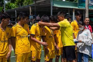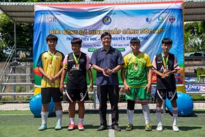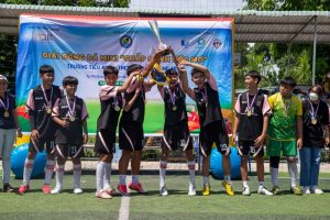 Phát biểu tại lễ bế mạc, thầy Nguyễn Anh Khoa – Hiệu trưởng nhà trường đã gửi lời cám ơn đến các nhà tài trợ đã hỗ trợ nhà trường tổ chức giải đấu thành công. Đặc biệt, thầy Khoa gửi lời cảm ơn đến Công ty Bất động sản PQR đã hỗ trợ số tiền 80 triệu đồng giúp học sinh nghèo.