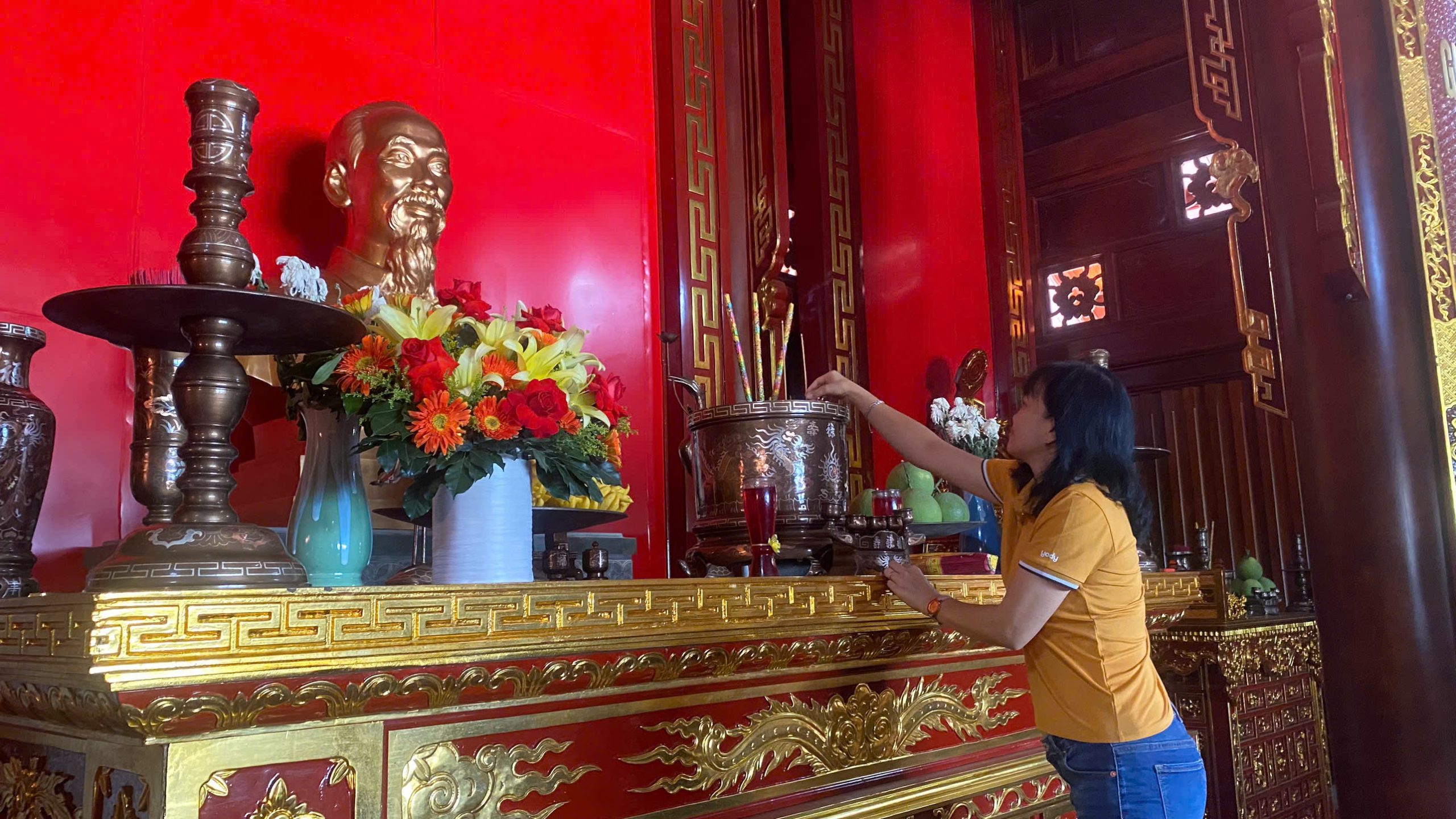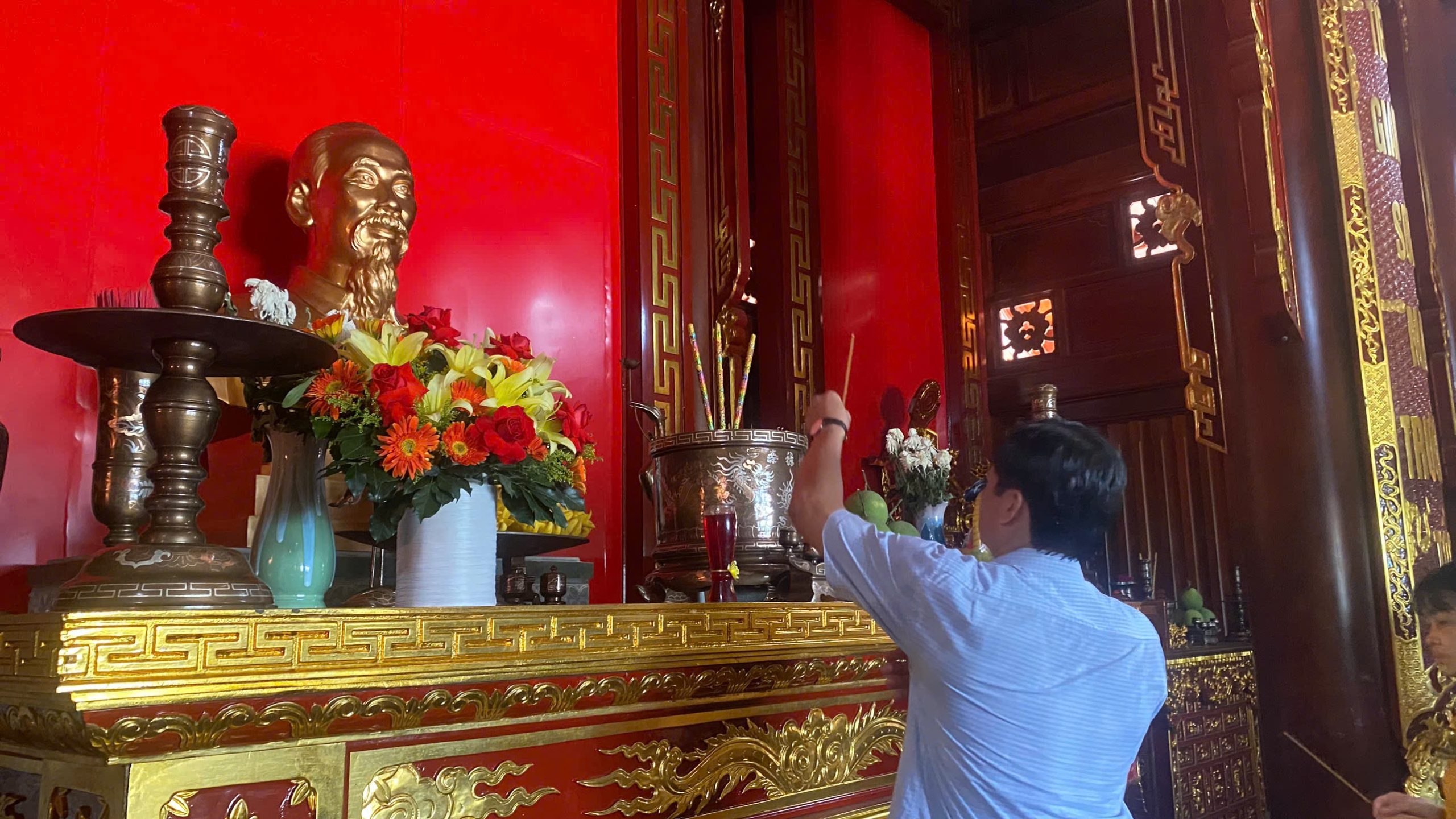 Ảnh: Lãnh đạo nhà trường thắp hương cho Cụ Nguyễn