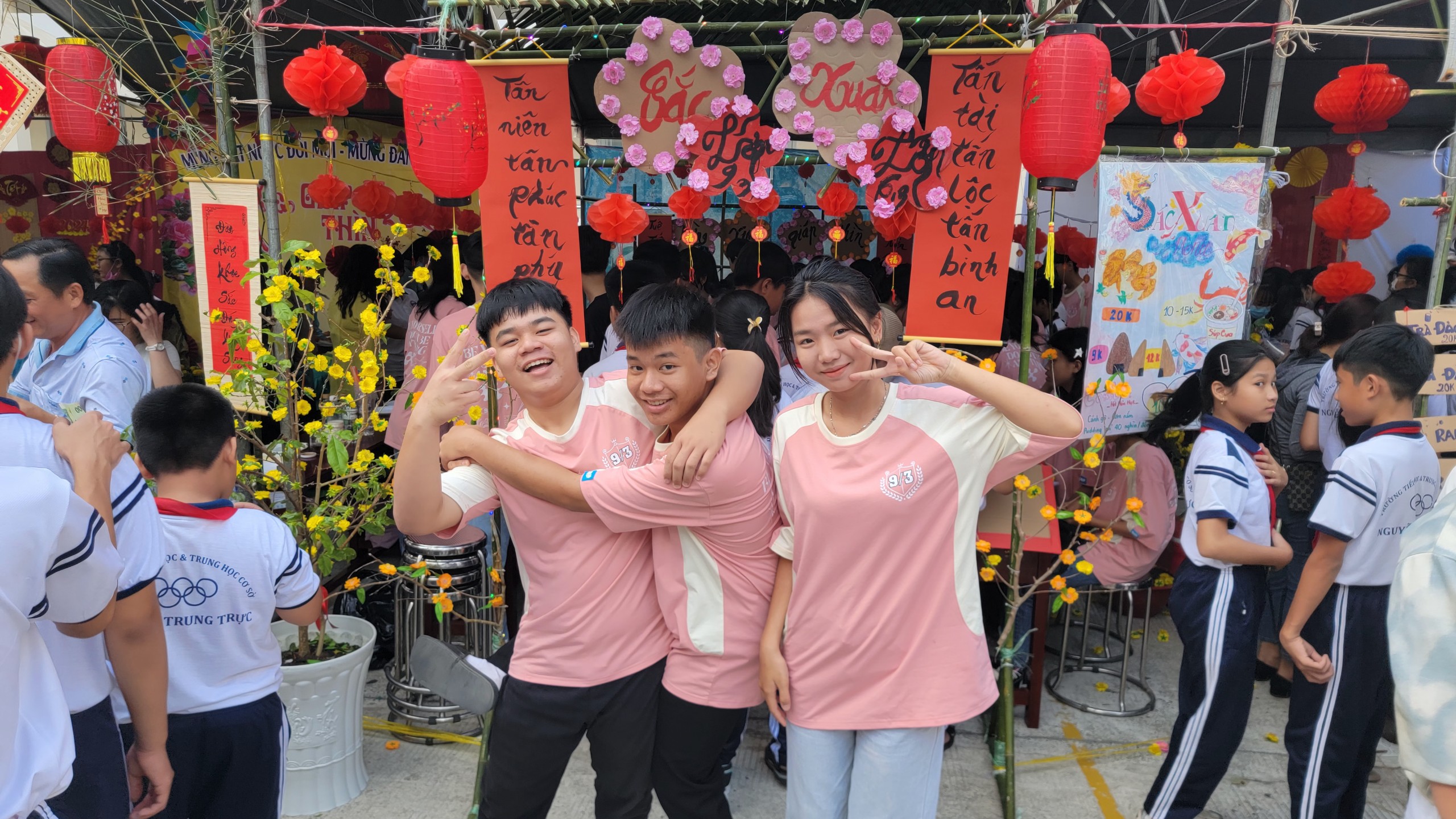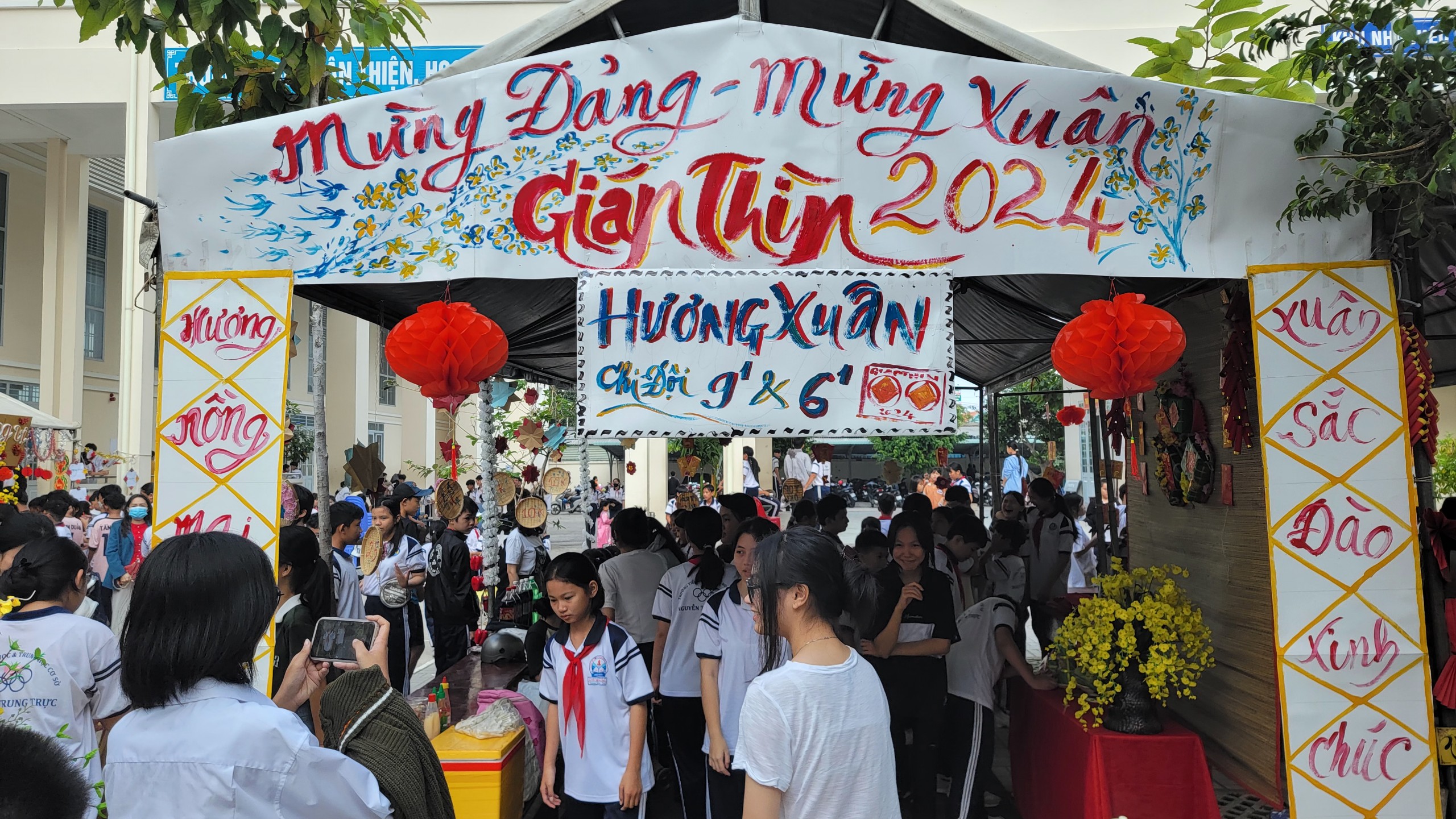 Hôm nay là ngày hội ẩm thực và hội trò chơi dân gian của trường chúng em để mừng Đảng, mừng Xuân và chào đón tết Nguyên Đán Giáp Thìn 2024. Chúng em thuộc chi đội 6/3 và chi đội 9/3 rất hân hoan chào đón năm mới 2024, với cái tên gian hàng thân thương thể hiện tất cả những vẻ đẹp của mùa xuân, niềm hạnh phúc khi không khí tết đã về trên đất Việt  Đó là SẮC XUÂN. Chúng em rất tự hào và hãnh diện về truyền thống tết Nguyên đán cổ truyền của dân tộc.