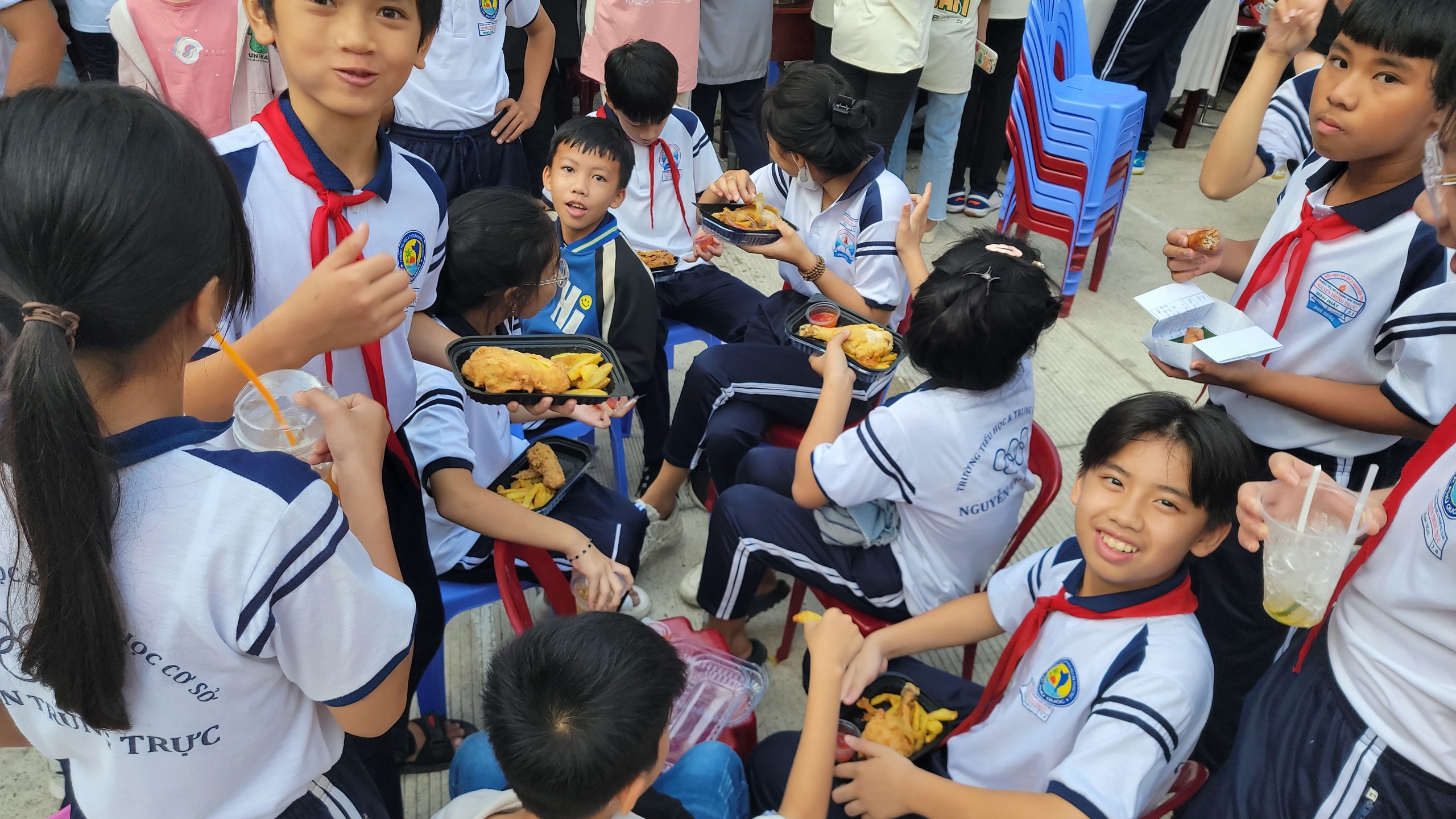Thật lòng là chúng em rất vui và hào hứng cho ngày hội ẩm thực hôm nay. Bởi chúng em xem đây là cơ hội tham gia vào những sân chơi bổ ích, mang lại những giá trị tích cực cho mọi người. Và đặc biệt hơn hết là chúng em được trải nghiệm thiết kế, trang trí gian hàng và buôn bán những món ăn mà không biết chừng sau này sẽ có vài đứa trong chúng em sẽ làm nghề đó mà mưu sinh.