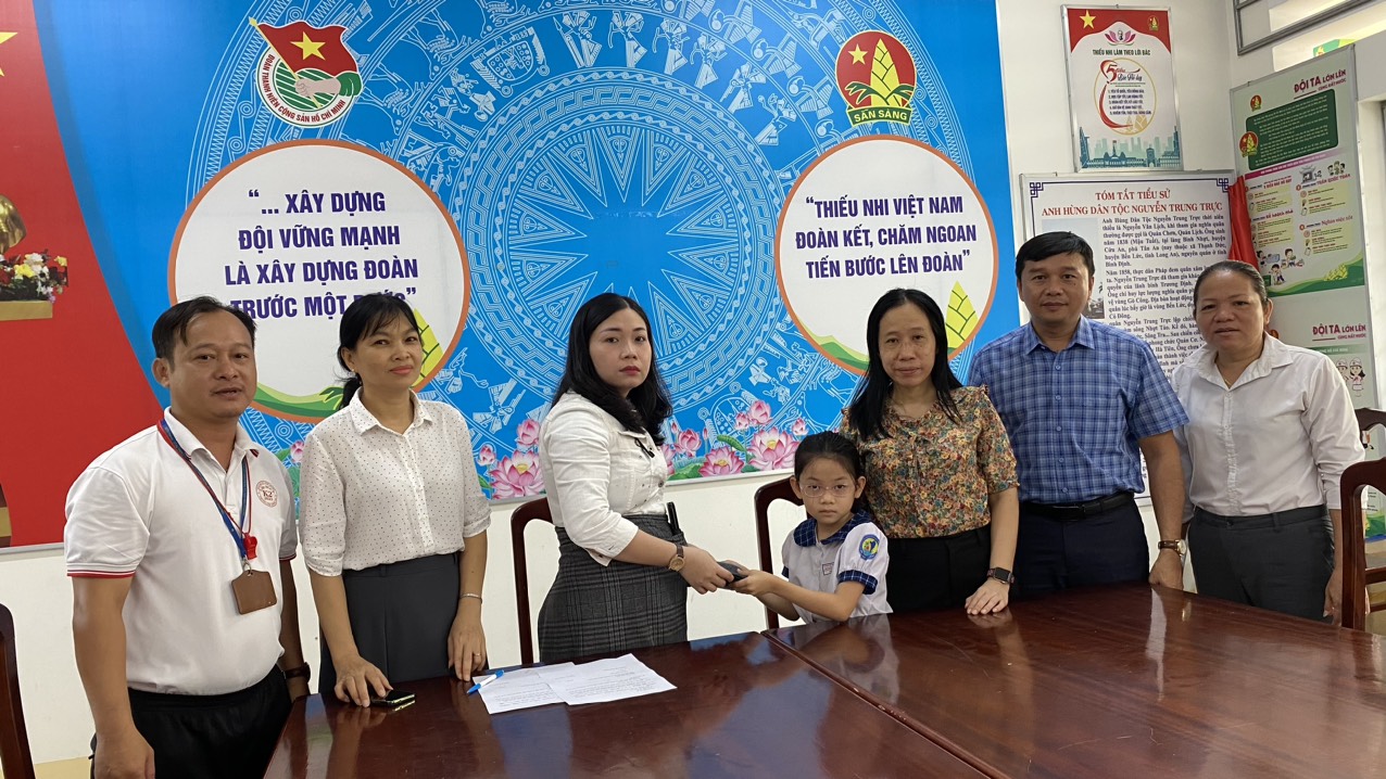 Sau khi nhận lại tài sản, chị D. đã thưởng cho bé My 1 triệu đồng và gửi nhà trường 1 triệu đồng để hỗ trợ học sinh nghèo của trường.
