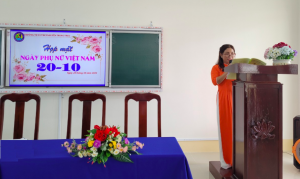 Phát biểu tại buổi họp mặt, đồng chí Nguyễn Anh Khoa, Bí thư chi bộ – Hiệu trưởng nhà trường gửi lời chúc mừng tốt đẹp đến tập thể chị em cán bộ, viên chức, người lao động của trường nhân dịp kỷ niệm ngày Phụ nữ Việt Nam. Đồng chí hy vọng trong thời gian tới, các chị em tiếp tục phát huy vai trò, nhiệm vụ của mình trong việc trường lẫn việc nhà, ngày càng có nhiều cơ hội phát triển. Đồng thời lưu ý Ban Chấp hành Công đoàn tiếp tục quan tâm, tạo điều kiện từ vật chất đến tinh thần cho cán bộ, nhân viên của đơn vị, đặc biệt là chị em phụ nữ để họ an tâm công tác.