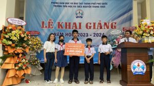 Cũng nhân dịp Lễ Khai giảng, các đại biểu, mạnh thường quân đã trao nhiều học bổng và quà cho HS nghèo, khó khăn.