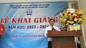 Ở phần diễn văn khai giảng, thầy Nguyễn Anh Khoa, Hiệu trưởng nhà trường cho biết năm học 2023 – 2024, nhà trường chào đón thêm 108 em học sinh khối 1 và 284 em học sinh khối 6.