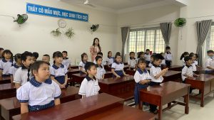 Ảnh: HS lớp 1 hân hoan chào đón năm học mới