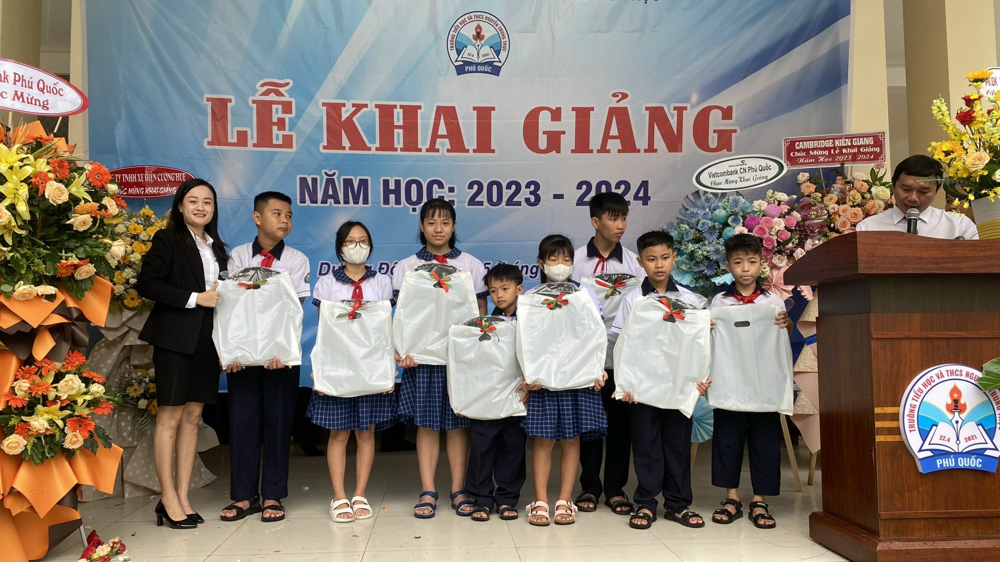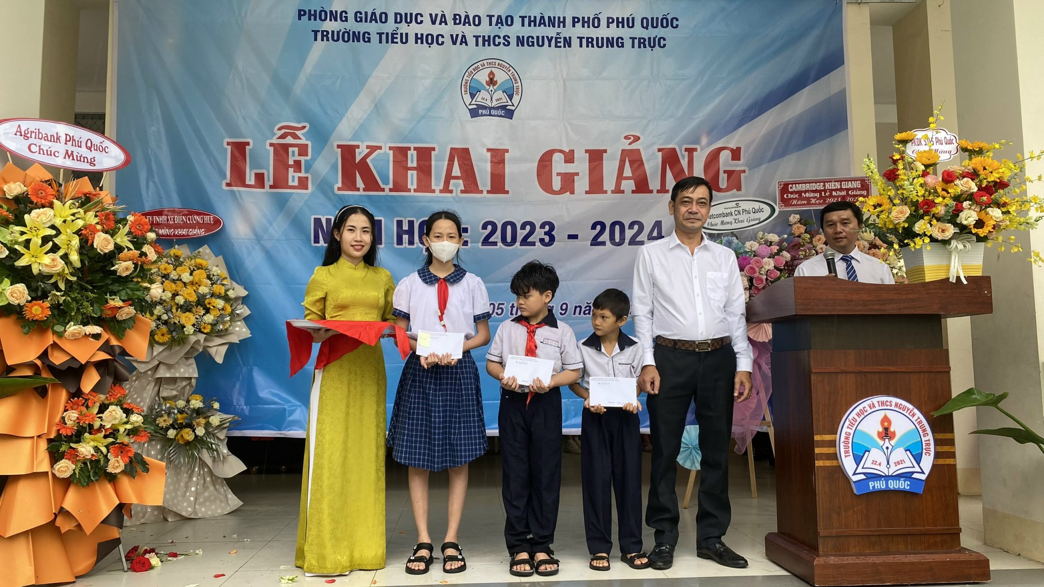 Cũng nhân dịp Lễ Khai giảng, các đại biểu, mạnh thường quân đã trao nhiều học bổng và quà cho HS nghèo, khó khăn.