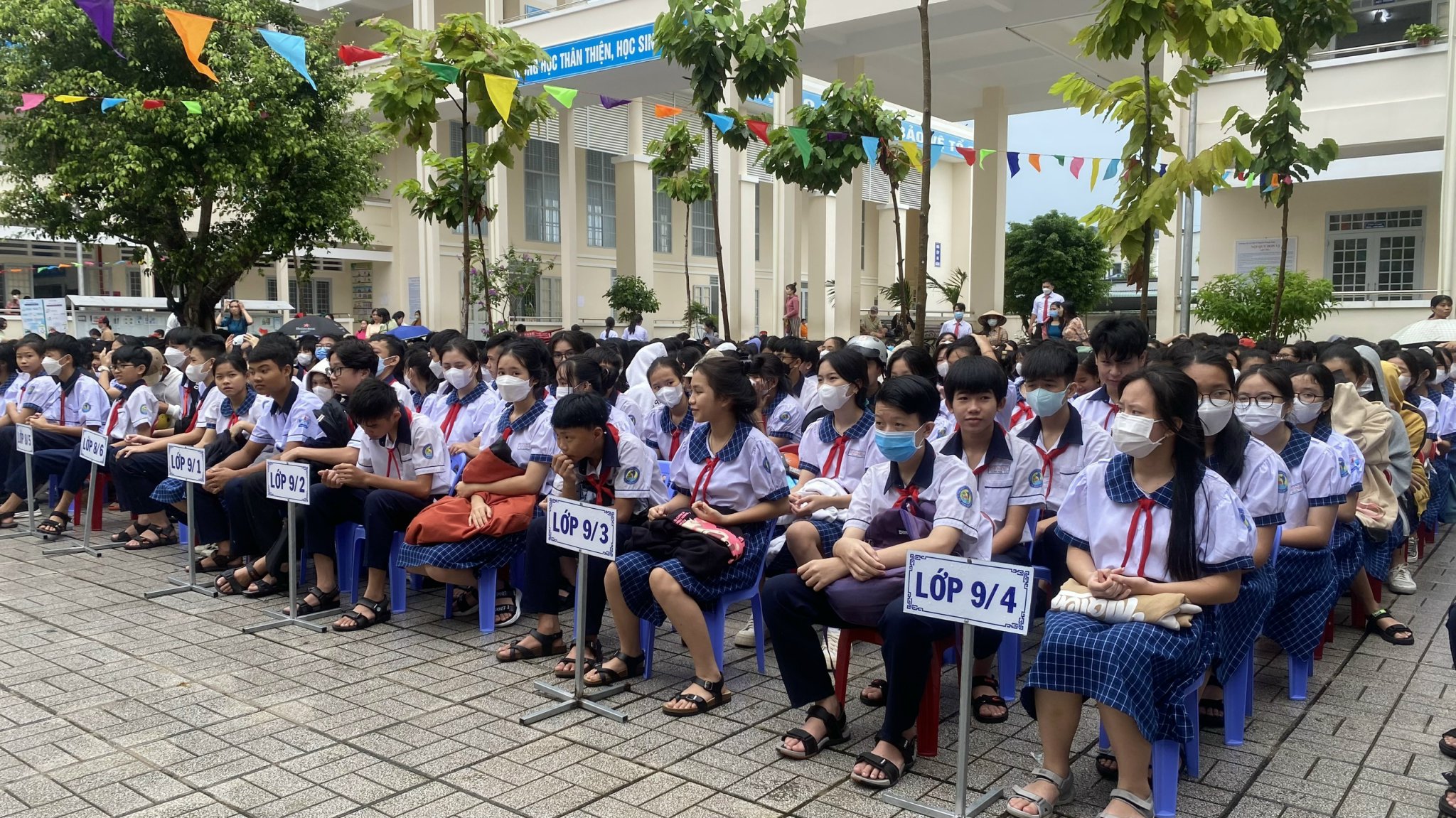 Ghi nhận tại buổi lễ, vào khoảng 7 giờ 30 phút, trời tạnh mưa hẳn, nhà trường đã cho học sinh tập trung ra sân để chuẩn bị. Tuy nhiên, vừa xong phần đón học sinh mới (lớp 1 và lớp 6) thì trời lại đổ mưa, nên nhà trường đã cho học sinh về các phòng học và nhà đa năng, còn sân khấu chính vẫn được sử dụng để tổ chức lễ với sự tham dự của lãnh đạo địa phương và BTC.