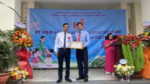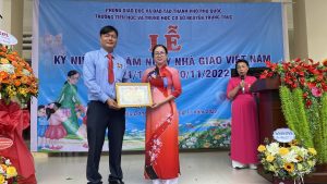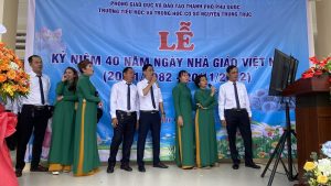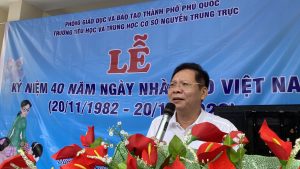 Về phía nhà trường, thầy Nguyễn Anh Khoa, Hiệu trưởng, đã ôn lại truyền thống Ngày nhà giáo Việt Nam trong 40 năm qua, lịch sử Ngày nhà giáo, thành tích đạt được của nhà trường từ khi mới thành lập đến nay…
