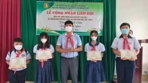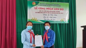 Anh Huỳnh Văn Bằng trao Quyết định công nhận Liên đội cho cô Phạm Thị Thúy Liễu – tổng phụ trách