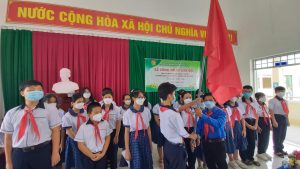 Cũng tại buổi lễ, anh Huỳnh Văn Bằng – Chủ tịch HĐĐ P.Dương Đông đã trao cờ cho liên đội.