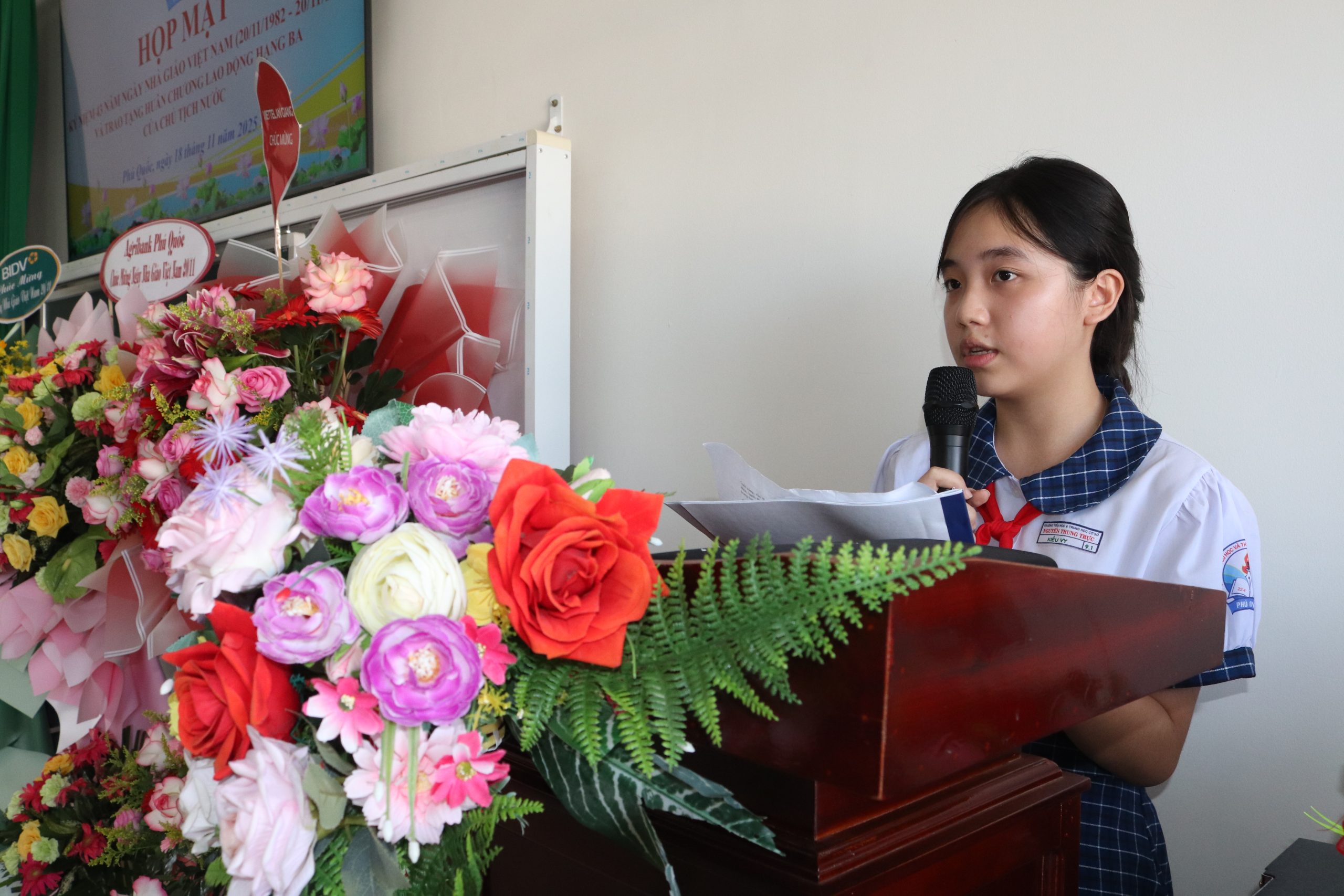 Phát biểu tại buổi họp mặt, ông Ngô Minh Trí – Uỷ viên Ban thường vụ Đảng uỷ đặc khu – Phó chủ tịch UBND đặc khu Phú Quốc ghi nhận và biểu dương những thành tích mà nhà trường đã đạt được trong thời qua. “Thành qủa ấy có được là nhờ tâm huyết, nổ lực và tình yêu nghề của đội ngũ giáo viên – những người vẫn lặng lẽ cống hiến, hết lòng vì học sinh thân yêu”, ông Trí nhấn mạnh và cho biết thêm địa phương sẽ luôn đồng hành và tạo điều kiện thuận lợi để nhà trường tiếp tục phát triển, mong rằng giáo viên sẽ giữ vững ngọn lửa nghề, tiếp tục đổi mới, sáng tạo trong giảng dạy, góp phần đưa sự nghiệp giáo dục của đặc khu ngày cảng khởi sắc.