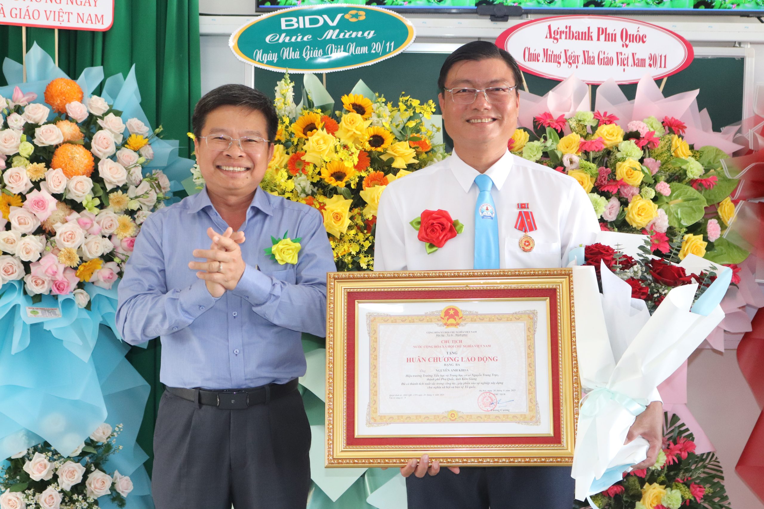 Thầy Nguyễn Anh Khoa – Bí thư Chi bộ, Hiệu trưởng nhà trường được vinh dự nhận Huân chương lao động Hạng 3 của chủ tịch nước. Buổi lễ trao huân chương được tổ chức trang trọng chiều 18/11 tại trường Tiểu học và THCS Nguyễn Trung Trực.