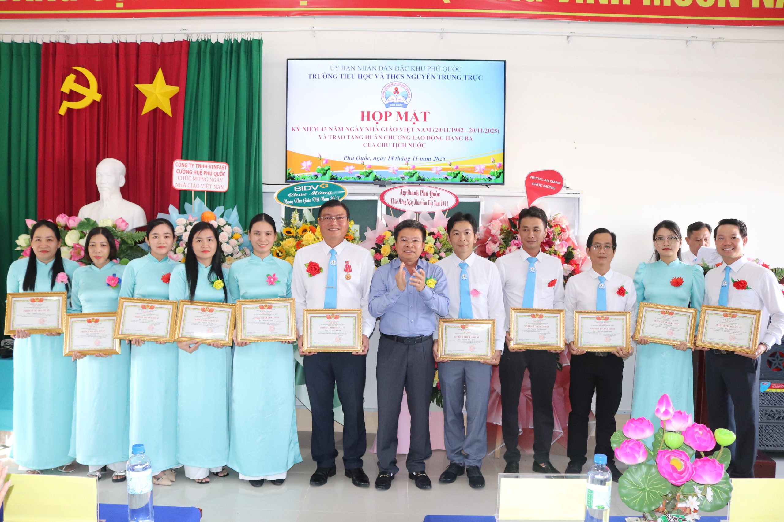 Chiều 18/11, trường Tiểu học và THCS Nguyễn Trung Trực long trọng tổ chức buổi họp mặt chào mừng Kỷ niệm 43 năm ngày Nhà giáo Việt Nam (20/11/1982 – 20/11/2025).