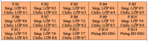 Chú ý: Buổi sáng ra về lúc 9 giờ 30, buổi chiều ra về lúc 15 giờ 30.